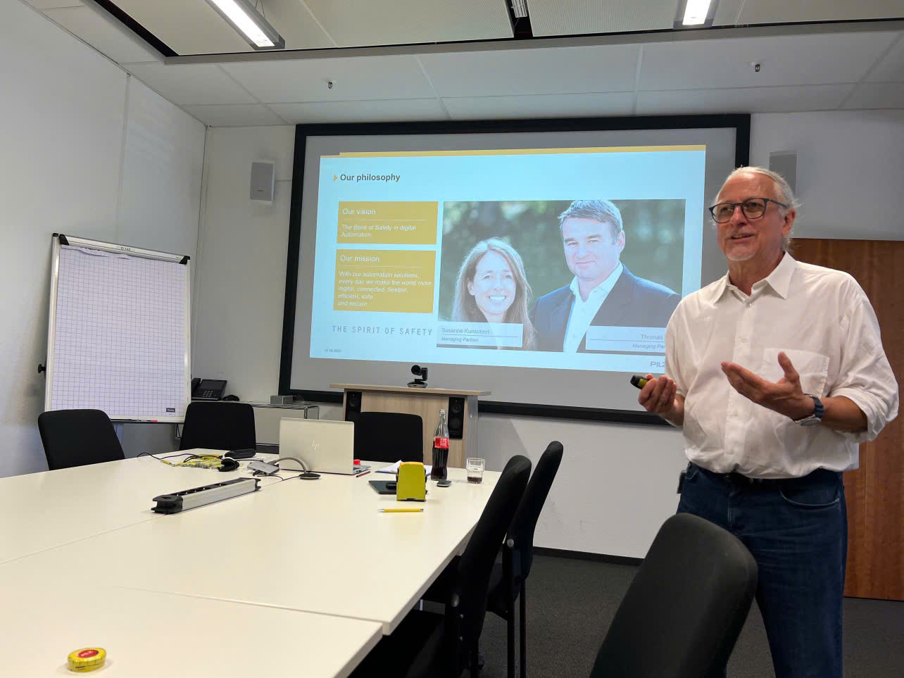 Đoàn đại diện EI Group đặc biệt ấn tượng với cách tiếp đón thân thiện và chuyên nghiệp từ ban lãnh đạo công ty, trong đó nổi bật là vị giám đốc trực tiếp gặp gỡ và chia sẻ với đoàn. Bằng những câu chuyện chân thực về hành trình đồng hành cùng Pilz trong nhiều năm qua, ông đã thể hiện sự tận tâm của một nhà lãnh đạo, đồng thời truyền cảm hứng sâu sắc về tinh thần phát triển bền vững, gắn kết giữa con người – công nghệ – giáo dục.